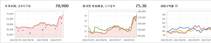 현재 KB금융의 주가는 70,900원이며 전일 대비 -300원으로 하락하였습니다. 주주현황을 살펴보면 BlackRock Fund Advisors(외 13인)이 지분의 8.30%를 소유하고 있습니다. KB금융은 상업은행 기업으로, 현재 주가는 70,900원입니다. 시가 총액은 28조 5282억 원이며 발행 주식수는 403,511,072주입니다. 외국인 보유 비중은 75.30%이며 장중 거래량은 1,777,459주를 기록했습니다. 또한 매출액은 88,468억 원으로 달성되었습니다.