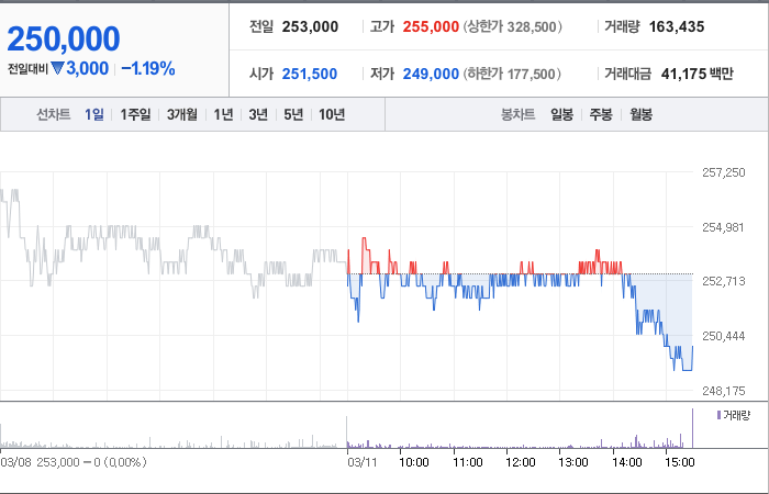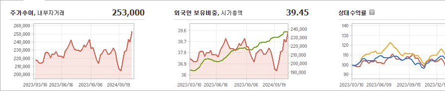 현대모비스의 현재 주가는 253,000원으로 전일 대비 원의 모습을 보이고 있습니다. 주주현황을 살펴보면 기아(외 6인)이 지분 31.68%를 소유하고 있습니다. 현대모비스는 자동차부품 기업으로 장중 주가는 253,000원입니다. 시가 총액은 23조4138억 원이며 발행 주식수는 93,655,094주입니다. 외국인 보유 비중은 39.45%이며 장중 거래량은 204,348을 기록했습니다. 매출액은 445,822억 원입니다.