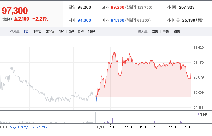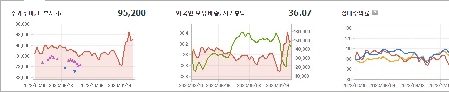 LG 주식의 현재 가격은 95,200원이며, 전일 대비로 -2,100원 하락한 상태입니다. LG의 대주주인 구광모(외 29인)은 지분의 41.70%를 소유하고 있습니다. LG는 복합 산업 기업으로서 현재 주식의 가격은 95,200원입니다. LG의 시가 총액은 15조3054억 원이며, 발행 주식수는 157,300,993주입니다. 외국인 보유 비중은 36.07%이며, 장중 거래량은 294,300주를 기록했습니다. 또한, LG의 매출액은 54,102억 원을 달성했습니다.