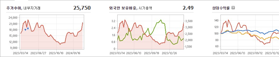 한농화성의 현재 주가는 25,750원이며 전일 대비 원의 모습을 보이고 있습니다. 주주현황을 살펴보면 김응상(외 3인)이 지분 46.03%를 소유하고 있습니다. 한농화성은 화학 기업으로, 장중 기준으로 주가는 25,750원입니다. 시가 총액은 3,683억 원이며 발행 주식수는 15,637,042주입니다. 외국인 보유 비중은 2.49%이며, 장중 거래량은 6,527,795주를 기록했습니다. 또한, 매출액은 1578억 원을 달성했습니다.