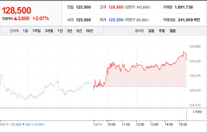 기아의 현재 주가는 125,900원이며 전일 대비 -200원으로 하락하고 있습니다. 현대자동차(외 4인)은 기아의 주주로 지분의 35.92%를 소유하고 있습니다. 기아는 자동차 기업으로, 장중 기준으로 주가는 125,900원입니다. 기아의 시가 총액은 51조6627억 원이며 발행 주식수는 402,044,203주입니다. 외국인은 기아의 주식을 40.67% 보유하고 있으며, 장중 거래량은 1,396,568주입니다. 기아의 매출액은 998,084억 원입니다.