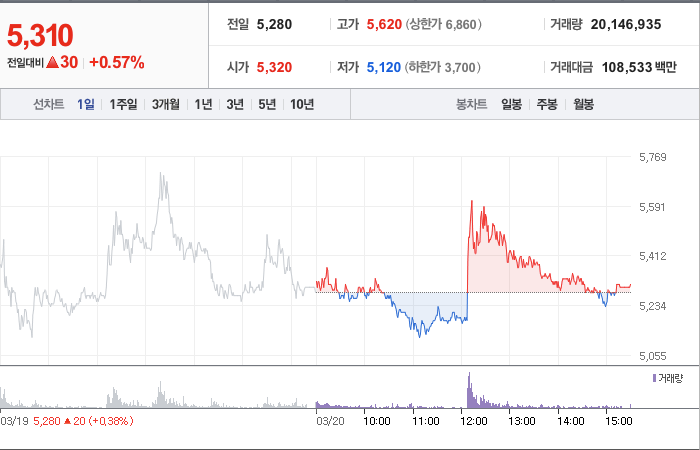 씨씨에스의 현재 주가는 5,280원이며 전일 대비 원의 모습을 보이고 있습니다. 주주현황을 살펴보면 유인무(외 2인)이 지분 8.33%를 소유하고 있습니다. 미디어 기업인 씨씨에스의 시가 총액은 2975억 원이며 발행 주식수는 65,152,039주입니다. 외국인 보유 비중은 0.24%이며 장중 거래량은 31,724,995를 기록했습니다. 매출액은 144억 원을 달성했습니다.
