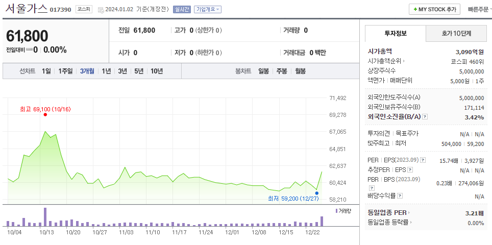 서울가스 주식 결론