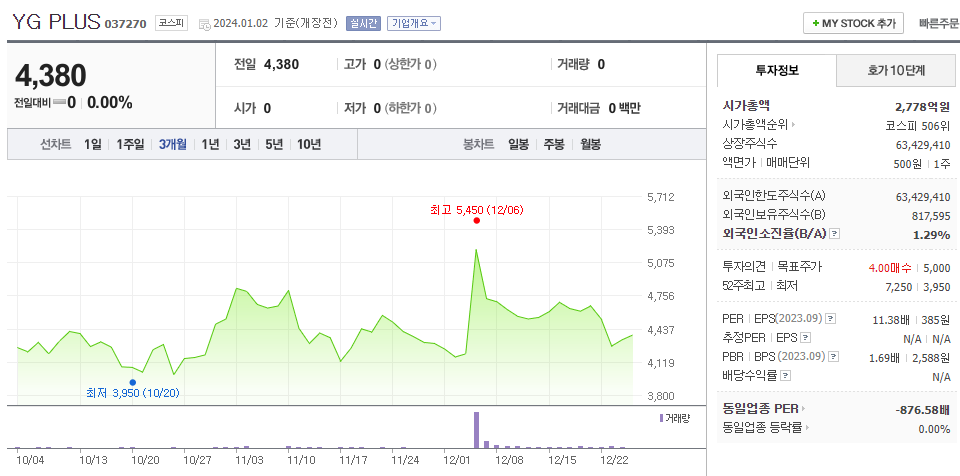 YG PLUS 주가 분석