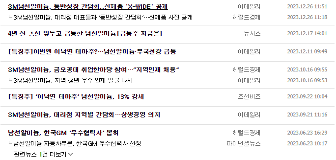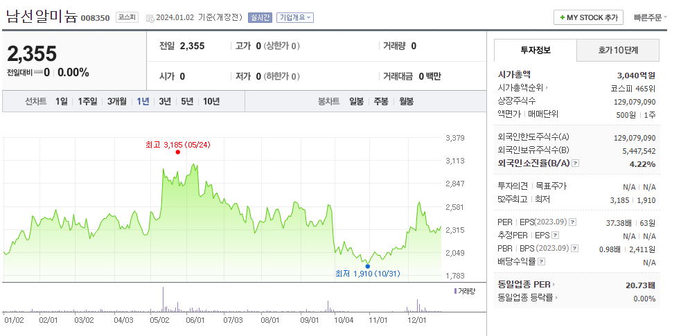 이 글에서는 남선알미늄 주가 전망과 목표 주가, 기업 정보에 대해서 설명합니다. 주식 투자에서 핵심은 미래의 기업 가치를 예상하고 선제적으로 움직이는 것입니다. 투자 대상을 결정하기 전에 현재 기업의 현황과 수치를 검토하는 것이 필요합니다. 남선알미늄 주식의 주요 현황과 투자 정보를 확인하시고 주식 투자에 도움이 될 수 있는 정보들을 모아 제공하오니 참고하시면 도움이 될 것입니다..