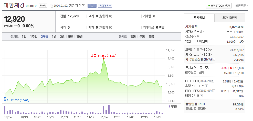대한제강 주가 분석