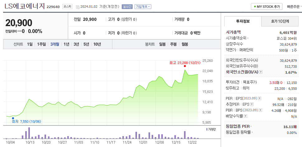 LS에코에너지 주가 분석