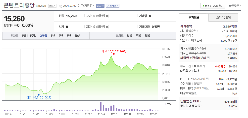 이 글에서는 콘텐트리중앙 주가 전망과 목표 주가, 기업 정보에 대해서 설명합니다. 주식 거래에서 중요한 부분은 현재 기업 가치보다는 미래의 기업 가치를 예측하고 먼저 행동하는 것입니다. 투자할 종목을 고르기 전에 현재 기업의 상황과 지표를 살펴보는 것이 중요합니다. 콘텐트리중앙 주식의 주요 현황과 투자 정보를 확인하시고 주식 투자에 도움이 될 만한 정보들을 모아 놓았으니 투자를 고려하실 때 참고하세요..