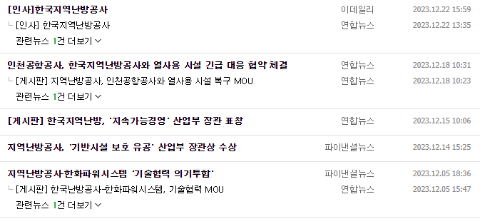 -2023년 9월 전년동기 대비 연결기준 매출액은 10.5% 증가, 영업손실은 35.7% 감소, 당기순손실은 22.4% 감소. 열과 전기의 집단에너지 사업의 시설투자가 지속되어 대부분의 사업투자가 2024년도까지 이어져 제대로 순수익의을 내기는 어려움. 동사는 파주시에서부터 평택시까지 국내 최대 수도권 열수송관 네트워크가 구성되어 있어 향후 타 에너지 기업대비 발전 가능성이 매우 크다는 강점을 가지고 있음.