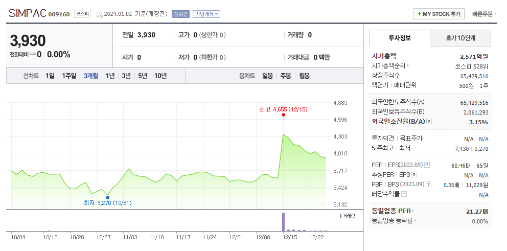SIMPAC 주가 분석
