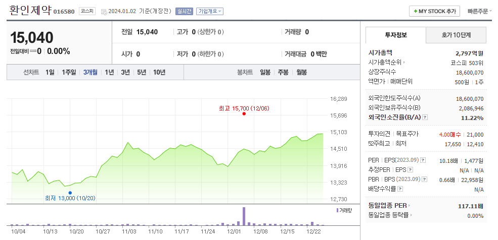 이 글에서는 환인제약 주가 전망과 목표 주가, 기업 정보에 대해서 설명합니다. 주식 거래에서 중요한 부분은 현재 기업 가치보다는 미래의 기업 가치를 예측하고 먼저 행동하는 것입니다. 투자할 종목을 고르기 전에 현재 기업의 상황과 지표를 살펴보는 것이 중요합니다. 환인제약 주식의 주요 현황과 투자 정보를 확인하시고 주식 투자를 고민하고 계시다면 유용한 정보들을 모아 놓은 자료를 확인해보세요..