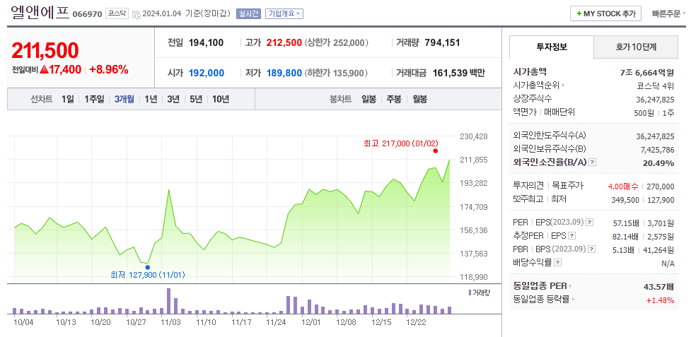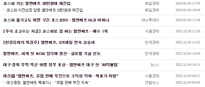 이 글에서는 엘앤에프 주가 전망과 목표 주가, 기업 정보에 대해서 설명합니다. 주식 시장에서 중요한 것은 미래의 기업 가치를 예측하고 선제적으로 움직이는 것입니다. 투자 대상을 선택하기 전에 현재 기업의 현황과 데이터를 확인하는 것이 필요합니다. 엘앤에프 주식의 주요 현황과 투자 정보를 확인하시고 주식 투자를 고려하고 계신다면 유용한 정보들을 모아 놓은 자료를 확인해보세요..