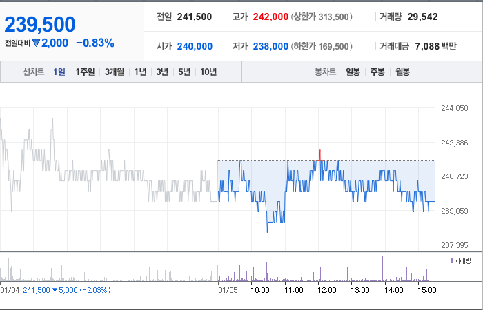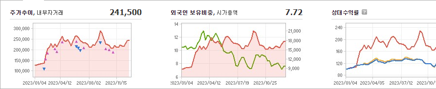 메디톡스 주식은 현재 241,500원으로 거래되고 있으며, 전일 대비 -5,000원의 하락세를 보이고 있습니다. 메디톡스의 대주주인 정현호(외 8인)은 지분의 18.35%를 소유하고 있습니다. 이 회사는 바이오 기업으로, 현재 주식 가격은 241,500원이며 시가 총액은 1조 7,480억 원이고, 발행 주식수는 7,298,468주입니다. 외국인 보유 비중은 7.72%이며, 장중 거래량은 34,840주를 기록했습니다. 또한 매출액은 1,531억 원을 기록했습니다.