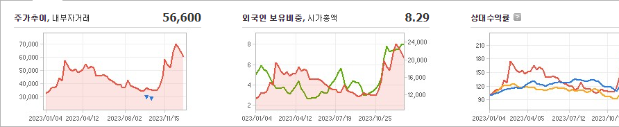위메이드의 현재 주가는 56,600원이며, 전일 대비 -2,700원 하락한 모습을 보이고 있습니다. 주주현황을 살펴보면, 박관호(외 1인)이 지분의 42.43%를 소유하고 있습니다. 또한, 위메이드는 게임 소프트웨어 기업으로, 현재 주가는 56,600원입니다. 시가 총액은 1조 9,163억 원이며, 발행 주식수는 33,796,962주입니다. 외국인 보유 비중은 8.29%이며, 장중 거래량은 800,076주를 기록했습니다. 또한, 위메이드의 매출액은 4,887억 원입니다.