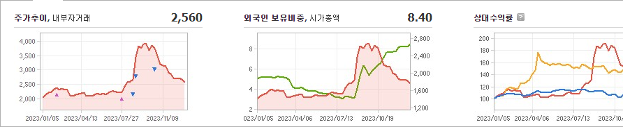 현재 벽산의 주가는 2,560원이며 전일 대비 -7.58원 하락한 모습을 보입니다. 벽산의 주주 현황을 살펴보면, 벽산엘티씨엔터프라이즈(외 12인)이 지분의 26.92%를 소유하고 있습니다. 벽산은 건축자재 기업으로 장중 기준으로 주가는 2,560원이 되며, 시가 총액은 1,748억 원이고 발행 주식수는 68,560,000주입니다. 외국인 보유 비중은 8.40%이며, 장중 거래량은 206,939주를 기록했습니다. 또한, 벽산은 4528억 원의 매출액을 달성했습니다.