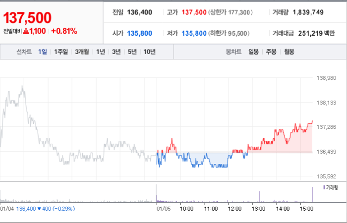 SK하이닉스의 현재 주가는 137,500원이며 전일 대비 상승하였습니다. 에스케이스퀘어(외 9인)은 SK하이닉스의 주주로서 지분 20.07%를 보유하고 있습니다. SK하이닉스는 반도체 및 관련 장비 기업으로 알려져 있으며, 현재 주가는 137,500원입니다. SK하이닉스의 시가 총액은 100조1003억 원이며 발행된 주식수는 728,002,365주 입니다. 외국인은 SK하이닉스의 주식 53.19%를 소유하고 있으며, 장중 거래량은 1,846,781주입니다. 또한, SK하이닉스는 최근에 214,602억 원의 매출액을 기록하였습니다.