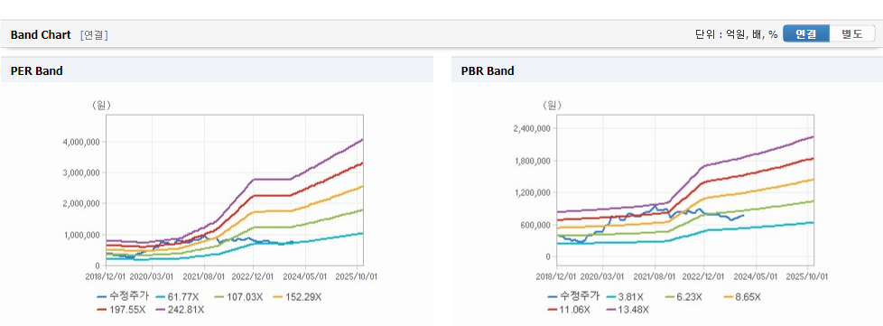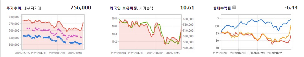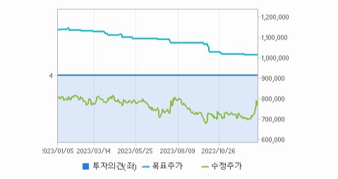- 주가 : 현재 주가는 756,000원으로 전일대비 14,000원 하락하였습니다.