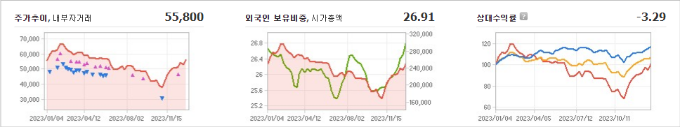 카카오의 현재 주가는 55,800원이며 전일 대비 -1,400원의 하락세를 보이고 있습니다. 주주 현황을 살펴보면, 김범수(외 92인)이 지분의 24.15%를 소유하고 있습니다. 카카오는 인터넷 서비스 기업으로, 현재 주가는 55,800원입니다. 시가 총액은 24조 8170억 원이며, 발행 주식 수는 444,749,160주입니다. 외국인 보유 비중은 26.91%이며, 장중 거래량은 1,316,579주입니다. 또한, 카카오는 매출액으로 59,437억 원을 달성했습니다.
