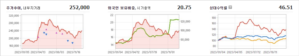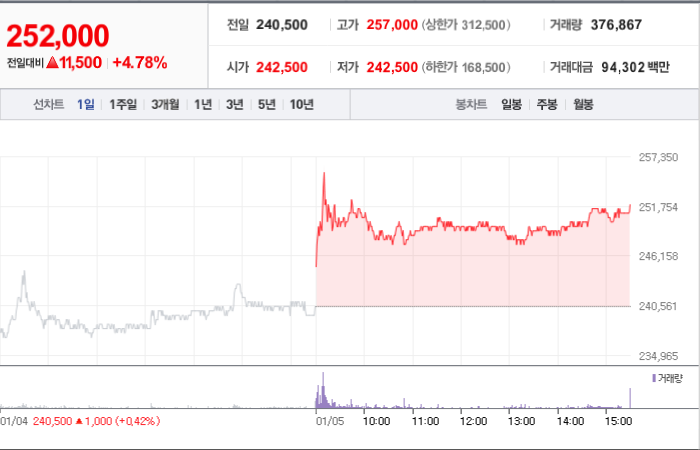 하이브의 현재 주가는 252,000원이며 전일 대비 -10.16원의 변동을 보여주고 있습니다. 주요 주주인 방시혁(외 11인)은 지분의 50.77%를 소유하고 있습니다. 하이브는 미디어 기업으로, 시장이 열린 상태에서의 주가는 252,000원입니다. 이 회사의 시가 총액은 10조4963억 원이며, 주식의 발행 수는 41,652,097주입니다. 외국인 보유 비중은 20.75%이고, 거래량은 장중에 377,790주를 기록했습니다. 또한, 하이브는 매출액으로 15,695억 원을 달성했습니다.