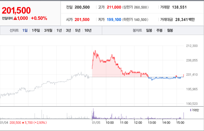 크래프톤의 현재 주가는 201,500원으로 전일 대비 -5.40원 하락한 것으로 나타났습니다. 주주 현황을 살펴보면, 장병규와 외 31인은 지분의 34.79%를 소유하고 있습니다. 크래프톤은 게임 소프트웨어 기업으로, 현재 주가는 201,500원이며 시가 총액은 9조7451억원입니다. 발행 주식수는 48,362,743주이며, 외국인 보유 비중은 33.27%입니다. 장중 거래량은 138,826주를 기록했으며, 매출액은 13,760억원입니다.