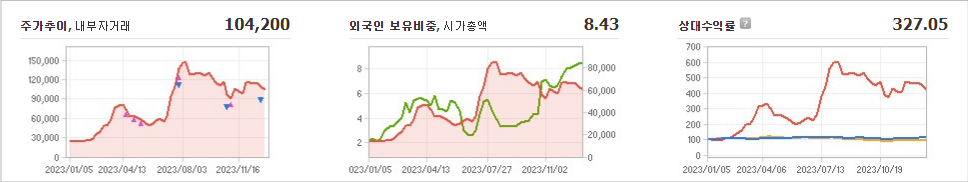 금양 주식의 현재 가격은 104,200원이며 전일 대비 -8.11원 하락했습니다. 금양의 대주주는 류광지(외 7인)이 지분의 41.50%를 소유하고 있습니다. 금양은 화학 회사로, 현재 주식의 거래 가격은 104,200원입니다. 금양의 시가 총액은 6조488억 원이고, 주식 수는 58,050,037주입니다. 외국인 보유 비중은 8.43%이며, 거래량은 592,555주를 기록했습니다. 금양은 매출액으로 1,120억 원을 달성했습니다.