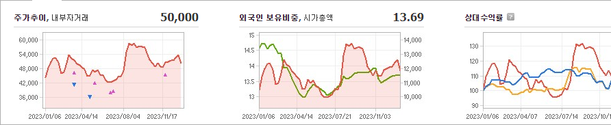 한샘의 현재 주가는 50,000원이며 전일 대비 -4.94원입니다. 주주 구성은 하임유한회사(외 5인)가 지분 35.97%를 소유하고 있습니다. 한샘은 내구소비재 기업이며, 장중 기준 주가는 50,000원입니다. 시가 총액은 1조1532억 원이고, 발행 주식수는 23,533,928주입니다. 외국인 보유 비중은 13.69%이며, 장중 거래량은 16,371주를 기록했습니다. 매출액은 14,649억 원입니다.