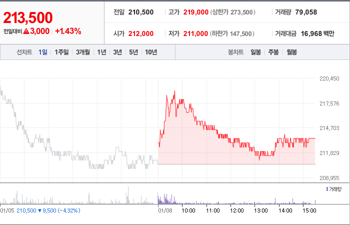 삼양식품은 현재 주가가 210,500원이며 전일 대비 -9,500원으로 하락하고 있습니다. 주주 현황을 살펴보면 삼양내츄럴스(외 8인)이 45.18%의 지분을 소유하고 있습니다. 이 회사는 식료품 기업으로 장중 기준 주가는 210,500원입니다. 시가 총액은 1조6083억 원이며 발행 주식수는 7,533,015주입니다. 외국인 보유 비중은 11.26%이며 장중 거래량은 122,857주입니다. 삼양식품의 매출액은 8,662억 원입니다.