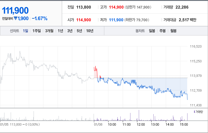 대웅제약은 제약 기업으로, 현재 주가는 113,800원이며 전일 대비 -24.13원의 변동이 있었습니다. 대웅제약의 주주현황을 살펴보면, 대웅과 외 5인이 지분의 61.55%를 소유하고 있습니다. 대웅제약의 시가 총액은 1조2965억 원이며, 발행 주식수는 11,586,575주입니다. 외국인의 보유 비중은 10.27%이며, 장중 거래량은 30,318주입니다. 또한 대웅제약은 매출액으로 10,135억 원을 달성했습니다.