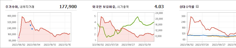 이수스페셜티케미컬은 현재 주가가 177,900원이며 전일 대비 -0.28원으로 하락하고 있습니다. 주주현황을 확인해보면 이수(외 8인)이 지분의 30.36%를 소유하고 있습니다. 이수스페셜티케미컬은 화학 기업으로, 현재 주가는 177,900원이며 시가 총액은 9938억 원이고 발행 주식수는 5,598,773주입니다. 외국인 보유 비중은 4.03%이며, 장중 거래량은 545,850주를 기록했습니다. 이에 매출액은 847억 원을 달성했습니다.