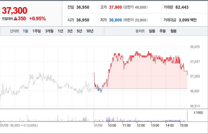 DL이앤씨는 건설 기업으로, 현재 주가는 36,950원이고 전일 대비 -4.03원 하락하였습니다. DL이앤씨의 시가 총액은 1조4433억 원으로 발행 주식수는 38,693,623주입니다. DL(외 5인)은 전체 지분의 24.58%를 소유하고 있으며, 외국인 보유 비중은 28.32%입니다. 또한, 장중 거래량은 90,540주이며 매출액은 56,581억 원입니다.
