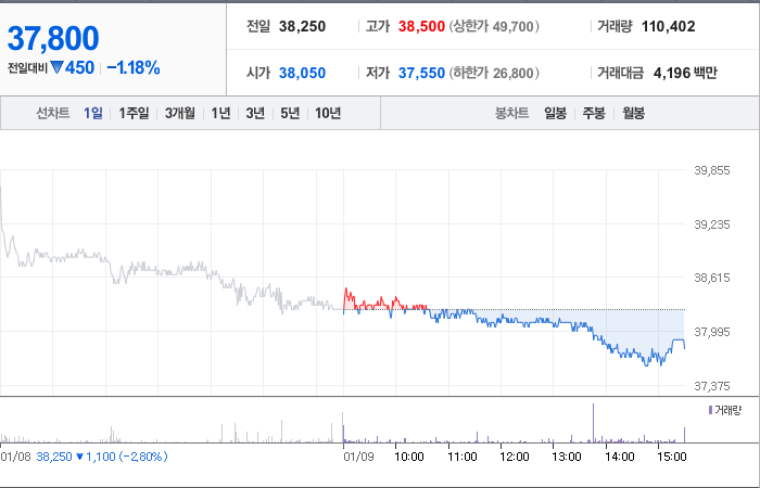 풍산 주식의 현재 가격은 38,250원이고, 전일 대비로 1,100원 하락했습니다. 풍산의 대주주로는 풍산홀딩스 외 3인이 지분의 38.01%를 소유하고 있습니다. 풍산은 금속 및 광물 기업이며, 현재 주식 시장에서의 가격은 38,250원입니다. 풍산의 시가 총액은 1조 593억 원이며, 발행된 주식 수는 28,024,278주입니다. 외국인 보유 비중은 14.77%이고, 장 중 거래량은 142,168주를 기록했습니다. 또한, 풍산은 30,116억 원의 매출액을 달성했습니다.