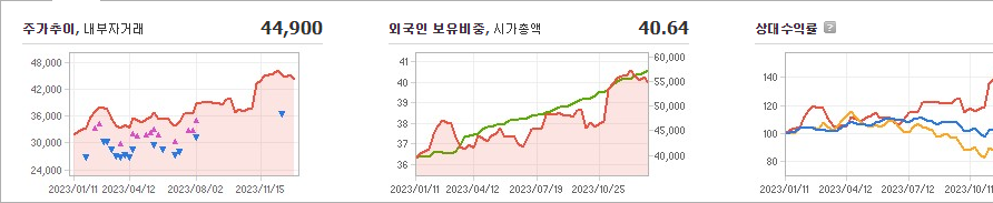 한국타이어앤테크놀로지의 현재 주가는 44,900원이며 전일 대비 -3.23원의 하락세를 보이고 있습니다. 주주 구성을 살펴보면 한국앤컴퍼니(외 23인)이 지분의 43.23%를 소유하고 있습니다. 이 회사는 자동차 부품 기업으로서, 현재 주식 시장에서의 주가는 44,900원입니다. 한국타이어앤테크놀로지의 시가 총액은 5조 4,691억 원이며, 발행 주식수는 123,875,069주입니다. 외국인 보유 비중은 40.64%이며, 장중 거래량은 210,095주를 기록했습니다. 이 회사의 매출액은 67,076억 원을 달성했습니다.