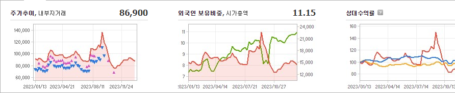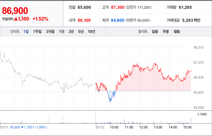 두산의 현재 주가는 86,900원이며 전일 대비 -1.70원의 변동을 보였습니다. 주주 현황을 살펴보면 박정원(외 24인)이 지분의 39.87%를 소유하고 있습니다. 두산은 복합 산업 기업으로, 장중 기준 주가는 86,900원입니다. 시가 총액은 1조 4,359억 원이며 발행 주식수는 16,523,835주입니다. 외국인 보유 비중은 11.15%이며, 장중 거래량은 61,513주를 기록했습니다. 또한, 매출액은 138,582억 원을 달성했습니다.