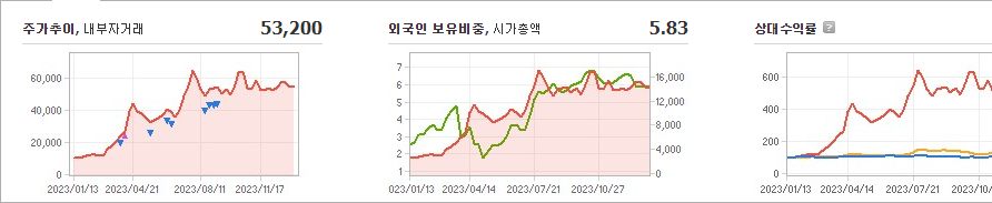 TCC스틸의 현재 주가는 53,200원이며 전일 대비 -1,200원의 변동을 보였습니다. 주주 현황을 살펴보면 손봉락(외 16인)이 지분의 33.49%를 소유하고 있습니다. TCC스틸은 금속 및 광물 기업으로서, 장중 기준 주가는 53,200원입니다. 시가 총액은 1조3946억 원이며 발행 주식수는 26,213,697주입니다. 외국인 보유 비중은 5.83%이며, 장중 거래량은 106,396주를 기록했습니다. 또한, 매출액은 4,674억 원을 달성했습니다.