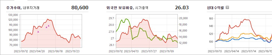 LX세미콘은 현재 주가가 80,600원이며 전일 대비 -1,800원으로 하락하고 있습니다. 주주 구성을 살펴보면 엘엑스홀딩스(외 2인)이 지분의 33.11%를 소유하고 있습니다. LX세미콘은 반도체 및 관련 장비 기업으로, 현재 주가는 80,600원입니다. 시가 총액은 1조 3109억 원이며 발행 주식수는 16,264,300주입니다. 외국인 보유 비중은 26.03%이며, 장중 거래량은 74,586주를 기록했습니다. 매출액은 13,887억 원입니다.