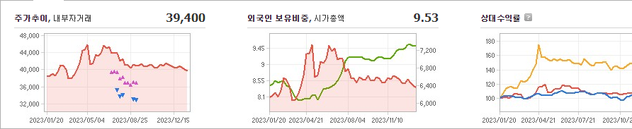 KCC글라스의 현재 주가는 39,400원이며 전일 대비 -150원의 변동을 보이고 있습니다. 주주현황을 살펴보면 정몽익(외 14인)이 지분의 43.31%를 소유하고 있습니다. KCC글라스는 건축자재 기업으로 시가 총액은 6292억 원이며 발행 주식수는 15,970,512주입니다. 외국인 보유 비중은 9.53%이며 거래량은 8,587주를 기록했습니다. 매출액은 12,415억 원입니다.