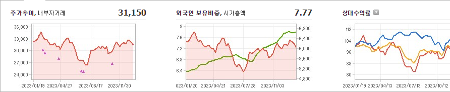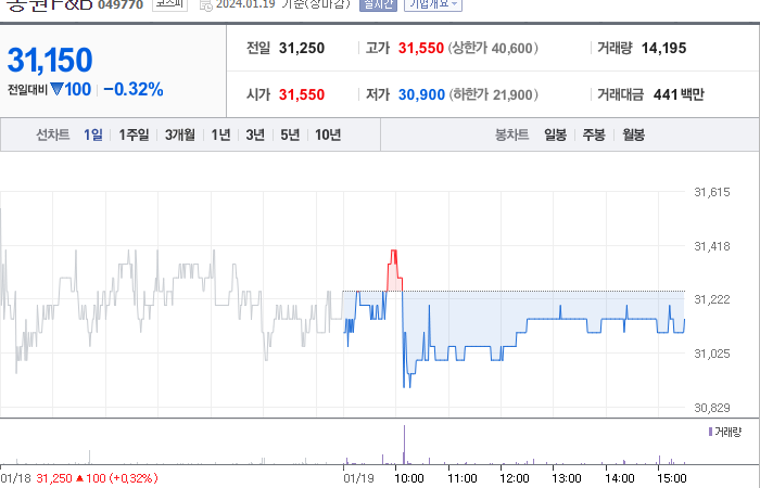 동원F&B의 현재 주가는 31,150원이며 전일 대비 -100원으로 하락하였습니다. 주주 현황을 살펴보면, 동원산업 외 3인이 지분의 74.42%를 소유하고 있습니다. 동원F&B는 식료품 기업으로, 현재 주가는 31,150원입니다. 시가 총액은 6011억 원이며 발행 주식수는 19,295,620주입니다. 외국인 보유 비중은 7.77%이며, 장중 거래량은 14,213주를 기록했습니다. 또한 매출액은 33,403억 원을 달성했습니다.