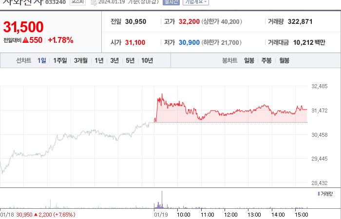 자화전자의 현재 주가는 31,500원이고 전일 대비 원의 모습을 보이고 있습니다. 김상면(외 4인)은 자화전자의 주주로 지분의 36.43%를 소유하고 있습니다. 자화전자는 통신장비 기업으로서, 장중 기준으로 주가는 31,500원입니다. 시가 총액은 6979억 원이며 발행 주식수는 22,155,870주입니다. 외국인 보유 비중은 8.10%이고, 장중 거래량은 323,061주를 기록했습니다. 또한, 자화전자는 매출액으로 2,861억 원을 달성했습니다.