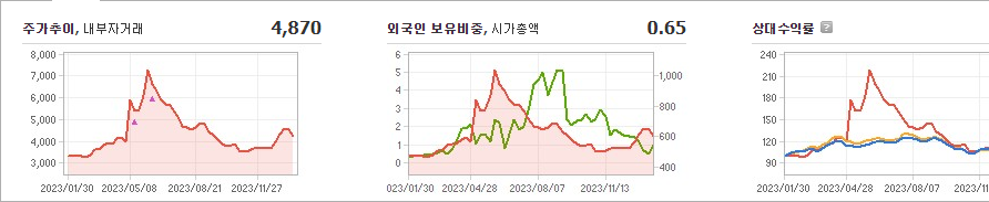 상신전자의 현재 주가는 4,870원이며, 전일 대비 -3.37원으로 하락하였습니다. 주주현황을 살펴보면, 미래나노텍(외 1인)이 지분의 45.66%를 소유하고 있습니다. 상신전자는 내구소비재 기업으로 분류되며, 현재 주가는 4,870원입니다. 시가 총액은 789억 원이며, 발행 주식수는 14,244,718주입니다. 외국인 보유 비중은 0.65%이며, 장중 거래량은 16,537,593주입니다. 또한, 상신전자는 매출액으로 846억 원을 달성하였습니다.