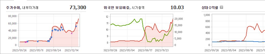 주식회사 신성델타테크의 현재 주가는 73,300원이며 전일 대비 -5,800원의 하락을 보여주고 있습니다. 구본상(외 8인)은 신성델타테크의 주주로, 지분의 33.59%를 소유하고 있습니다. 이 회사는 내구소비재 기업으로 분류되며, 현재 주가는 73,300원입니다. 신성델타테크의 시가 총액은 2조 4,598억 원이며, 발행 주식수는 27,483,948주입니다. 외국인 보유 비중은 10.03%이며, 장중 거래량은 2,022,219주를 기록했습니다. 또한, 이 회사의 매출액은 6,477억 원을 달성했습니다.