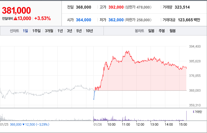 LG에너지솔루션의 현재 주가는 368,000원이며, 전일 대비 -12,500원 하락하였습니다. 주주현황을 살펴보면 LG에너지솔루션은 이 지분의 81.84%를 소유하고 있습니다. LG에너지솔루션은 전자 장비 및 기기 기업으로, 현재 주가는 368,000원입니다. 시가 총액은 89조1540억 원이며, 발행 주식수는 234,000,000주입니다. 외국인 보유 비중은 4.78%이며, 장중 거래량은 317,036주를 기록하였습니다. 또한, 매출액은 257,441억 원을 달성하였습니다.