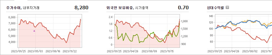 뉴프렉스의 현재 주가는 8,280원이며 전일 대비 원의 모습을 보이고 있습니다. 주주현황을 살펴보면 임우현(외 3인)이 지분 31.50%를 소유하고 있습니다. 뉴프렉스는 전자 장비 및 기기 기업으로 장중 기준으로 주가는 8,280원입니다. 시가 총액은 2631억 원이며 발행 주식수는 24,450,761주입니다. 외국인 보유 비중은 0.70%이며 장중 거래량은 15,346,674를 기록했습니다. 매출액은 1,428억 원을 달성했습니다.