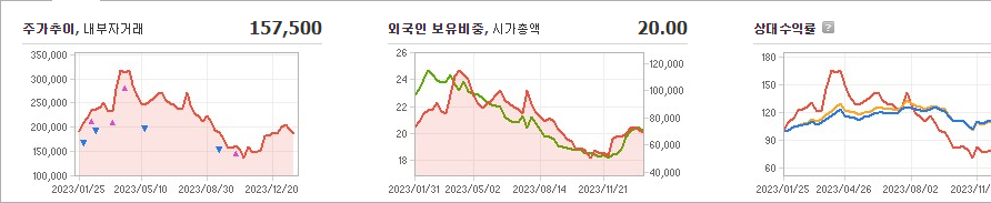 엘앤에프의 현재 주가는 157,500원이며 전일 대비 -19,500원의 하락을 보이고 있습니다. 주주현황을 살펴보면, 새로닉스(외 15인)이 지분의 23.72%를 소유하고 있습니다. 엘앤에프는 전자 장비 및 기기 기업으로서, 현재 주가는 157,500원이며 시가 총액은 5조7779억 원입니다. 발행 주식수는 36,247,825주이며, 외국인 보유 비중은 20.00%입니다. 장중 거래량은 1,118,343주를 기록했습니다. 또한, 매출액은 39,865억 원을 달성했습니다.