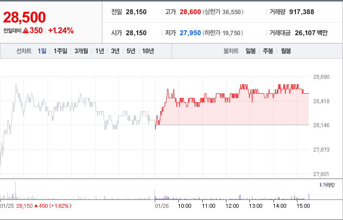 현대로템의 현재 주가는 28,150원이며 전일 대비 -13.52원의 변동을 보여주고 있습니다. 현대로템의 대주주는 현대자동차(외 3인)로써 지분의 33.77%를 소유하고 있습니다. 현대로템은 주로 운송인프라 기업으로 분류되며, 현재 주가는 28,150원입니다. 시가 총액은 3조1106억 원이며, 발행 주식수는 109,142,293주입니다. 외국인 보유 비중은 10.89%이며, 장중 거래량은 1,481,082주를 기록했습니다. 또한, 매출액은 25,982억 원을 달성했습니다.