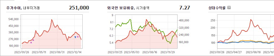 포스코퓨처엠의 현재 주가는 251,000원이고, 전일 대비 -10,000원으로 하락하였습니다. 주주현황을 살펴보면 포스코홀딩스(외 4인)이 지분의 62.54%를 소유하고 있습니다. 포스코퓨처엠은 화학 기업으로, 현재 주가는 251,000원입니다. 시가 총액은 20조6827억 원이며, 발행 주식수는 77,463,220주입니다. 외국인 보유 비중은 7.27%이며, 장중 거래량은 612,060주를 기록하였습니다. 또한, 매출액은 36,140억 원으로 달성하였습니다.