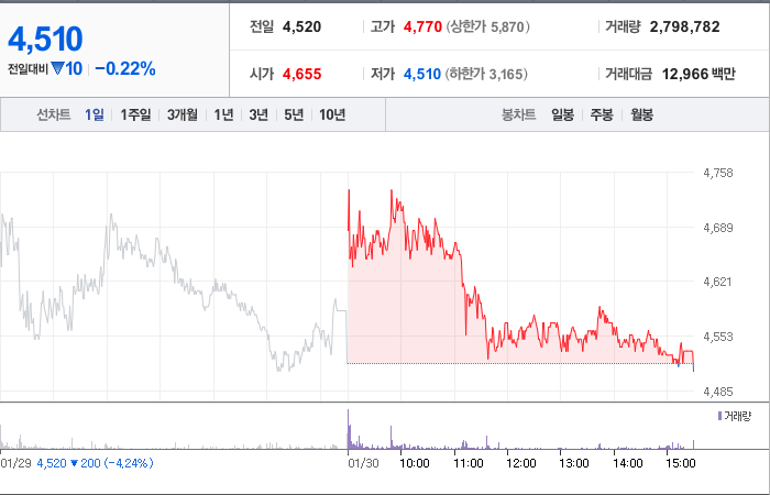 LS네트웍스의 현재 주가는 4,520원이며 전일 대비 -200원의 하락세를 보이고 있습니다. 주주현황을 살펴보면 LS네트웍스의 지분 81.81%는 E1(외 1인)이 소유하고 있습니다. LS네트웍스는 도소매 기업으로, 현재 주가는 4,520원입니다. 시가 총액은 3,554억 원이며 발행 주식수는 78,803,016주입니다. 외국인 보유 비중은 0.80%이며, 장중 거래량은 2,583,958주를 기록했습니다. 또한, 매출액은 2,767억 원으로 달성되었습니다.