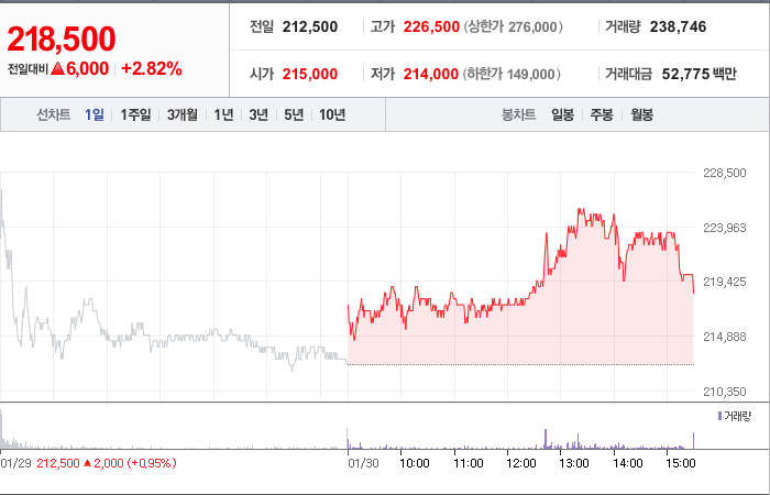 크래프톤은 게임 소프트웨어 기업으로, 현재 주가는 212,500원이고 전일 대비 원의 모습을 보이고 있습니다. 주주현황을 살펴보면, 장병규(외 31인)이 지분의 34.79%를 소유하고 있습니다. 크래프톤의 시가 총액은 10조 5676억 원이며 발행 주식수는 48,364,493주입니다. 외국인 보유 비중은 33.52%이며, 장중 거래량은 249,597을 기록했습니다. 또한 매출액은 13,760억 원을 달성했습니다.