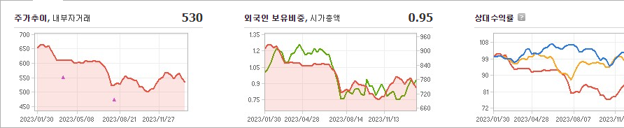 보해양조의 현재 주가는 530원이며 전일 대비 -2.03원의 하락을 보였습니다. 보해양조의 주주 구성을 살펴보면, 창해에탄올(외 7인)이 지분의 24.48%를 소유하고 있습니다. 보해양조는 음료 기업으로, 현재 주가는 530원입니다. 시가 총액은 751억 원이며 발행 주식수는 139,120,129주입니다. 외국인 보유 비중은 0.95%이며, 장중 거래량은 197,813주를 기록했습니다. 또한, 보해양조는 매출액으로 698억 원을 달성했습니다.