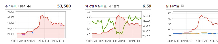 포스코인터내셔널의 현재 주가는 53,500원으로, 전일 대비 -14.26원 하락했습니다. 포스코홀딩스(외 3인)은 포스코인터내셔널의 지분의 70.82%를 소유하고 있습니다. 이 회사는 무역 기업으로, 현재 주가는 53,500원입니다. 시가 총액은 9조4998억 원이며, 발행 주식수는 175,922,788주입니다. 외국인 보유 비중은 6.59%이며, 장중 거래량은 574,821주를 기록했습니다. 또한, 매출액은 252,234억 원입니다.