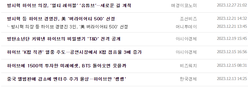 하이브 주식 결론